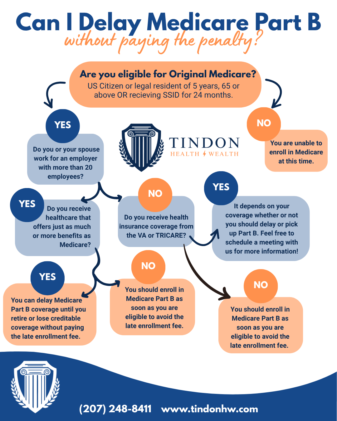 Once you turn 65 and become eligible for Original Medicare, you can either enroll in both Parts A & B, or just enroll in Part A and delay Part B. This can depend on a variety of factors. See our graphic below that can help explain when it’s most beneficial to enroll in Part B.